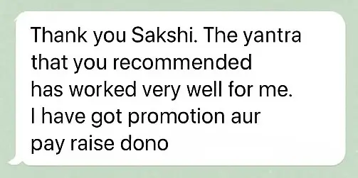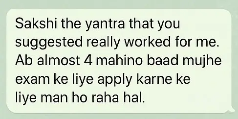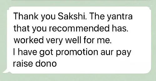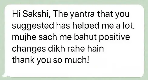 You’ll receive a fully activated (SIDDH) Yantra and a personalized audio recording by Sakshi to remove blockages in love, money, career, health, or emotions